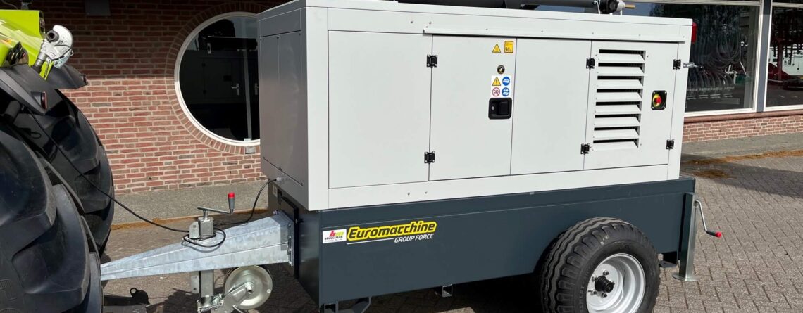 Afgeleverd in Joppe, nieuwe Bauer Rainstar E51 haspel met 125-500 slang, incl geluidsarme Euromacchinery motorpompset